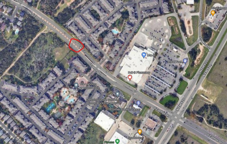 Location: O’Connor Drive median, roughly 1,200 feet west of N FM 620