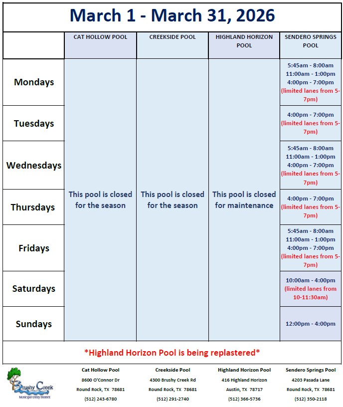 Swim Lessons & pool lane rentals will also be happening at the pools: