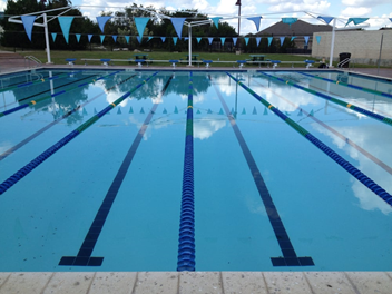 The heated Main Pool (8 lane x 25yds) is open year round. This pool is 3.5 feet to 5 feet deep with lap lanes for fitness swimming or an open recreation area.