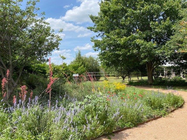 Take a relaxing stroll on our trails and enjoy our xeriscape garden with small ponds and waterfalls, colorful flowers, and natural Texas beauty. This setting provides a beautiful view from our garden pavilion, garden pergola, and meeting rooms. The pavilion is entered through our xeriscape garden.